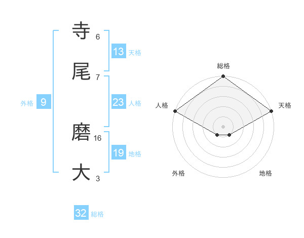 寺尾 磨大さんの総格は32画の5点!