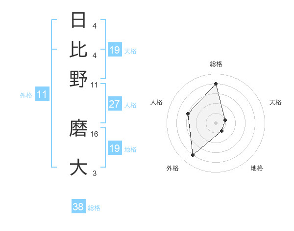 日比野 磨大さんを姓名の画数から五運を鑑定