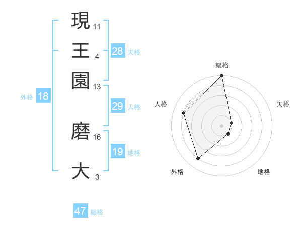 現王園 磨大さんを姓名の画数から五運を鑑定