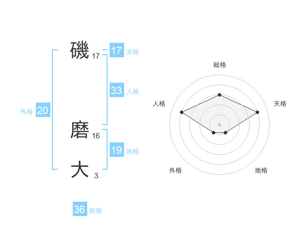 磯 磨大さんの天格は17画の4点!