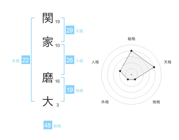 関家 磨大さんの総格は48画の4点!