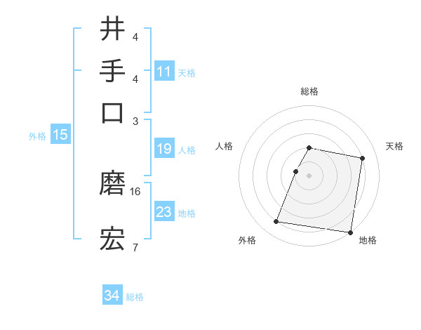 井手口 磨宏さんを姓名の画数から五運を鑑定