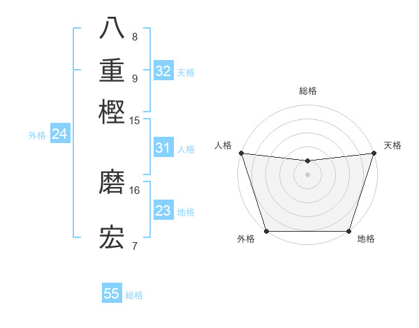 八重樫 磨宏さんを姓名の画数から五運を鑑定