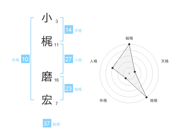 小梶 磨宏さんを姓名の画数から五運を鑑定