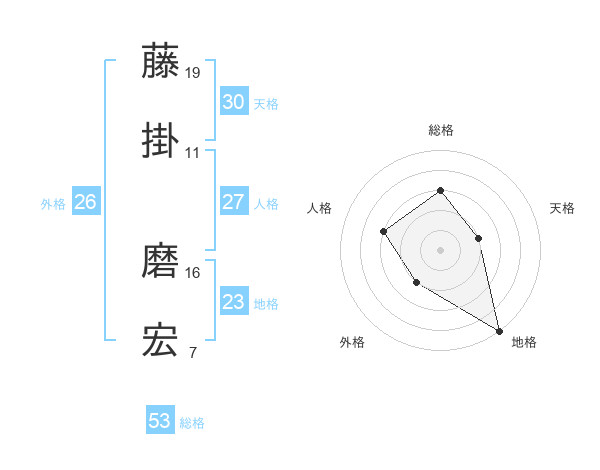 藤掛 磨宏さんの総格は53画の3点!