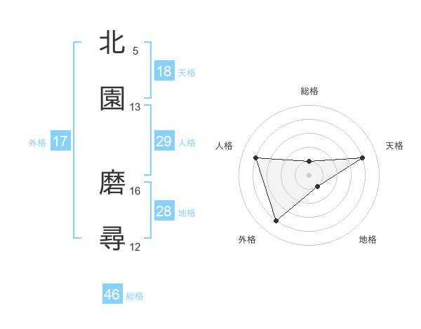 北園 磨尋さんの外格は17画の4点!