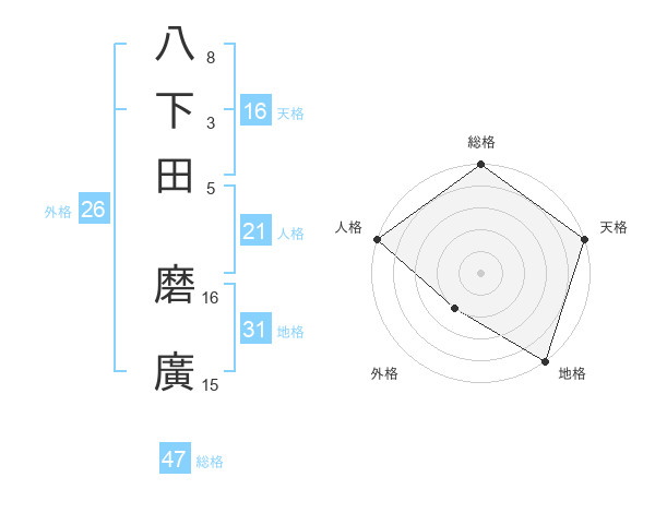 八下田 磨廣さんを姓名の画数から五運を鑑定