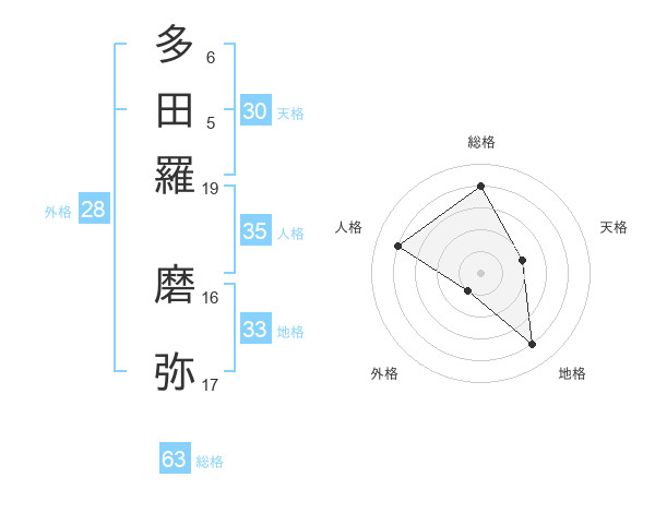 多田羅 磨弥さんを姓名の画数から五運を鑑定