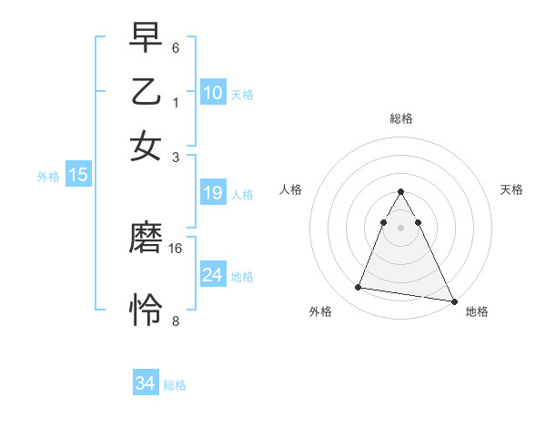 早乙女 磨怜さんの総格は34画の2点!