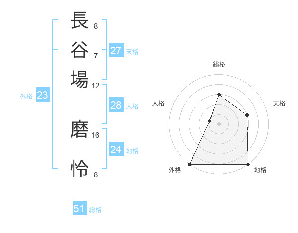 長谷場 磨怜さんを姓名の画数から五運を鑑定