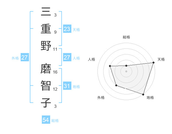 三重野 磨智子さんを姓名の画数から五運を鑑定