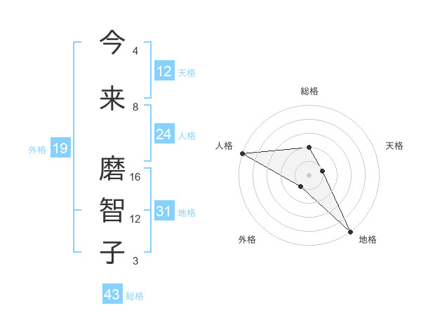 今来 磨智子さんを姓名の画数から五運を鑑定