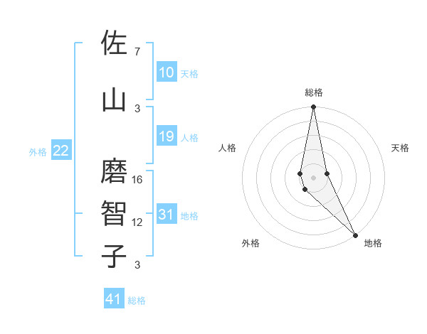 佐山 磨智子さんを姓名の画数から五運を鑑定