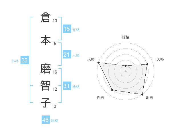 倉本 磨智子さんの地格は31画の5点!