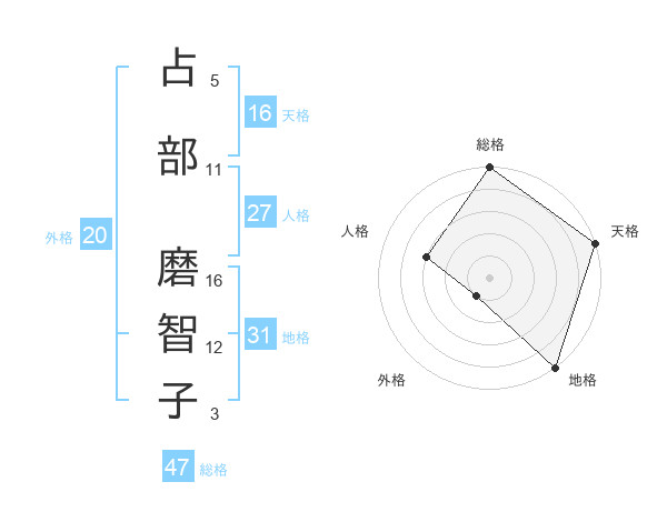 占部 磨智子さんを姓名の画数から五運を鑑定