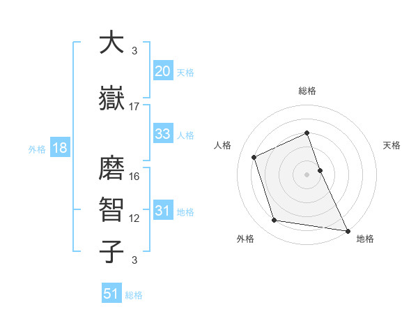 大嶽 磨智子さんを姓名の画数から五運を鑑定