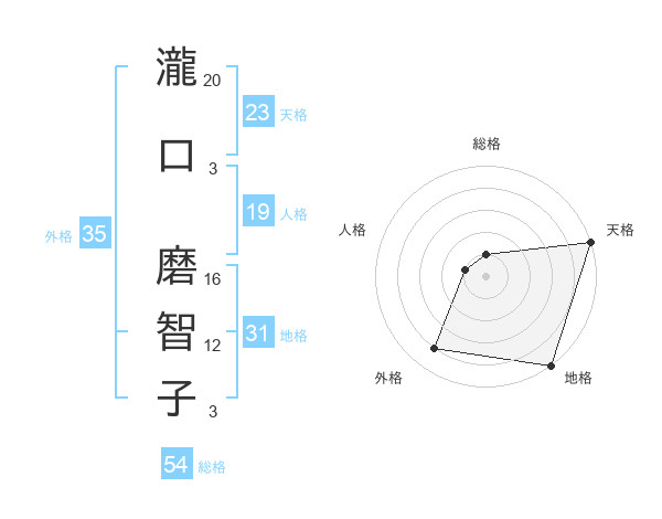 瀧口 磨智子さんを姓名の画数から五運を鑑定