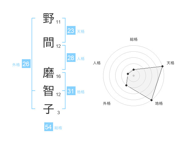 野間 磨智子さんの外格は26画の2点!