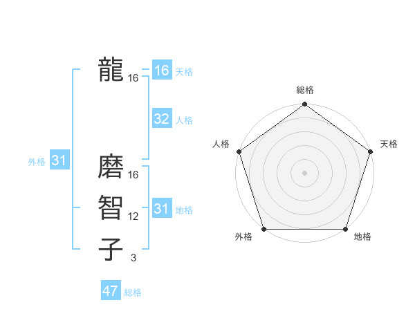龍 磨智子さんの外格は31画の5点!