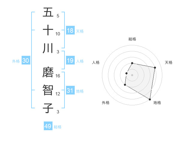 五十川 磨智子さんを姓名の画数から五運を鑑定
