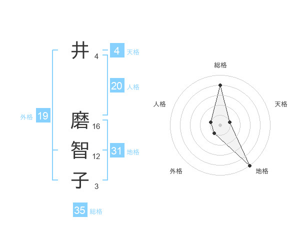 井 磨智子さんの総格は35画の4点