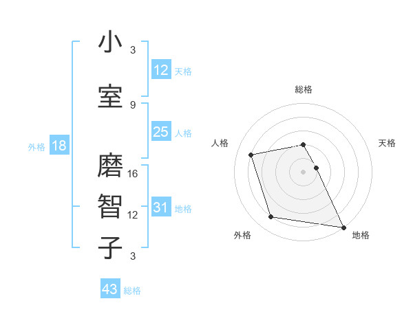 小室 磨智子さんを姓名の画数から五運を鑑定