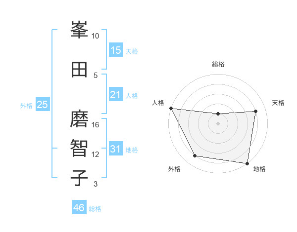 峯田 磨智子さんを姓名の画数から五運を鑑定