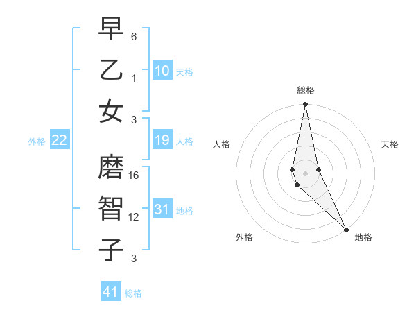 早乙女 磨智子さんの総格は41画の5点!