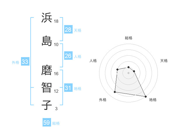 浜島 磨智子さんを姓名の画数から五運を鑑定