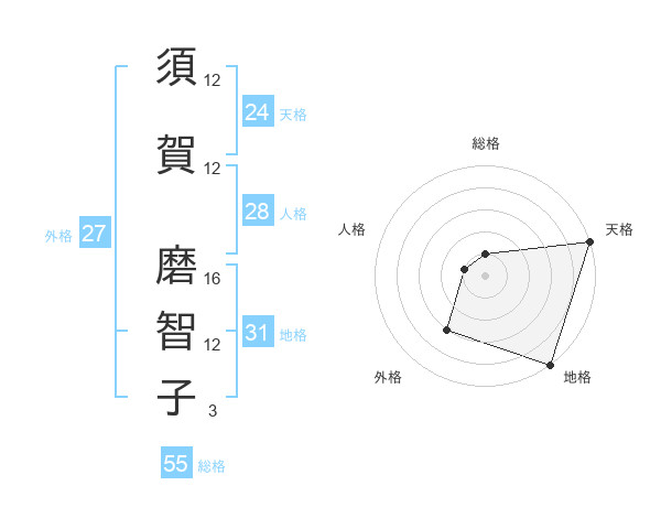 須賀 磨智子さんを姓名の画数から五運を鑑定