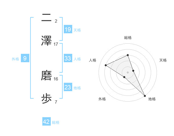 二澤 磨歩さんの人格は33画の4点!