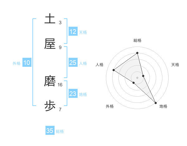 土屋 磨歩さんを姓名の画数から五運を鑑定