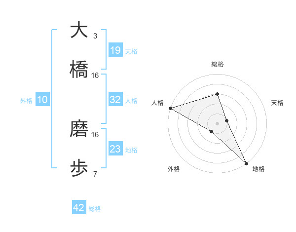 大橋 磨歩さんを姓名の画数から五運を鑑定