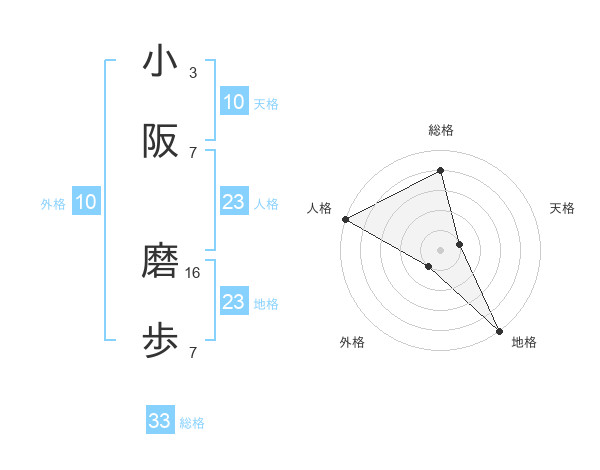 小阪 磨歩さんを姓名の画数から五運を鑑定