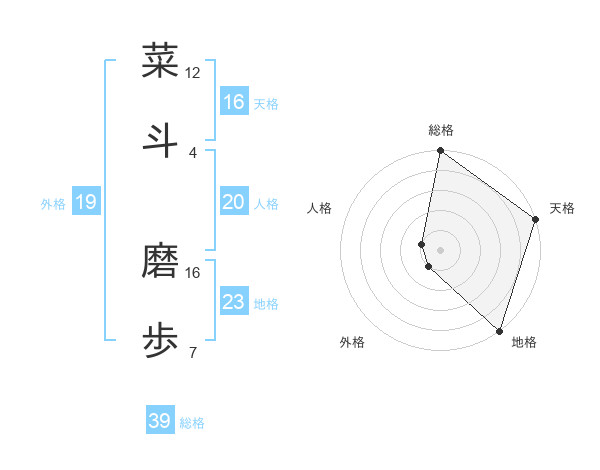 菜斗 磨歩さんを姓名の画数から五運を鑑定
