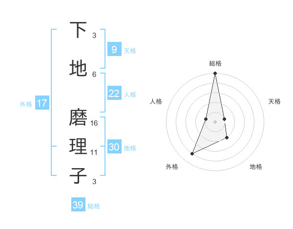 下地 磨理子さんを姓名の画数から五運を鑑定