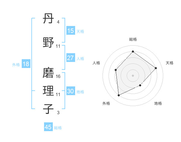 丹野 磨理子さんを姓名の画数から五運を鑑定