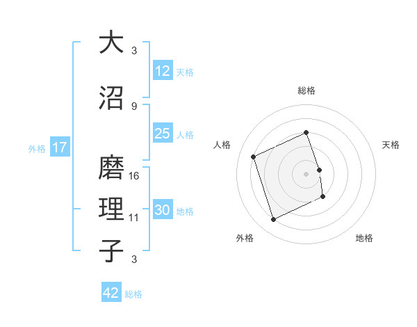 大沼 磨理子さんの総格は42画の3点