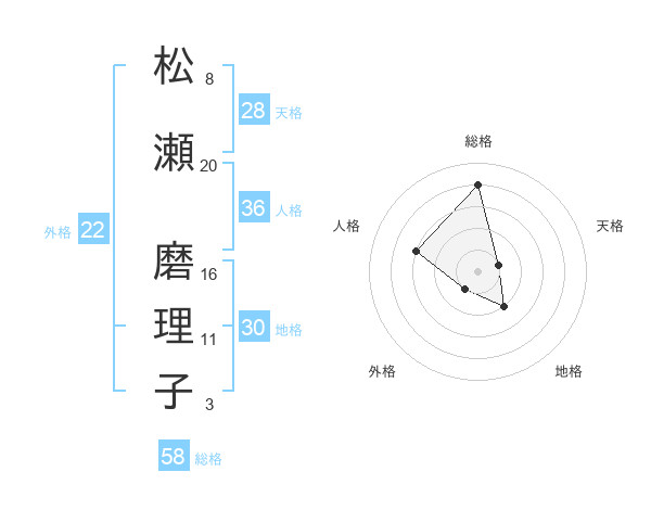 松瀬 磨理子さんの外格は22画の1点!