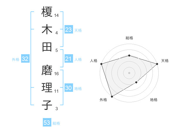 榎木田 磨理子さんを姓名の画数から五運を鑑定