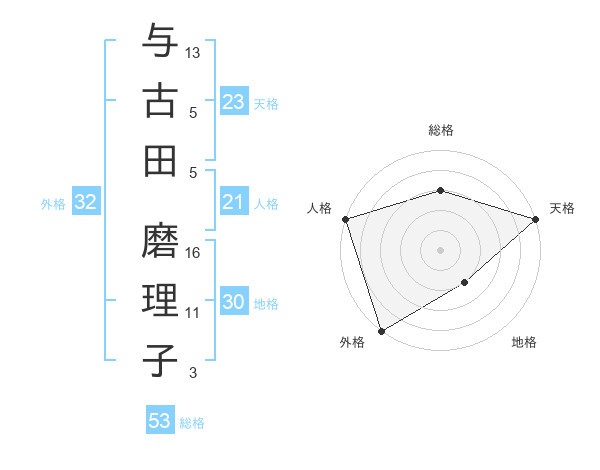 与古田 磨理子さんを姓名の画数から五運を鑑定