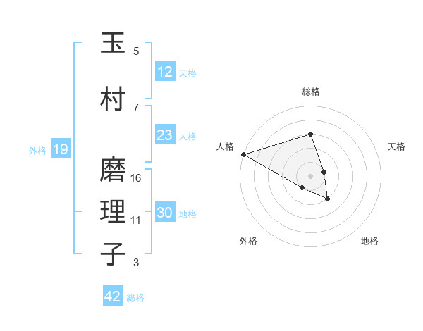 玉村 磨理子さんを姓名の画数から五運を鑑定