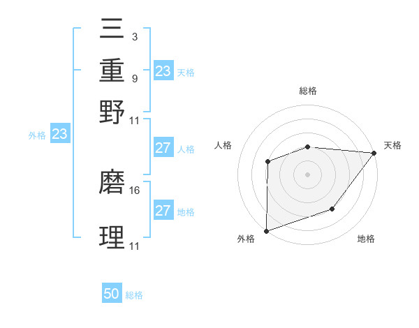 三重野 磨理さんを姓名の画数から五運を鑑定