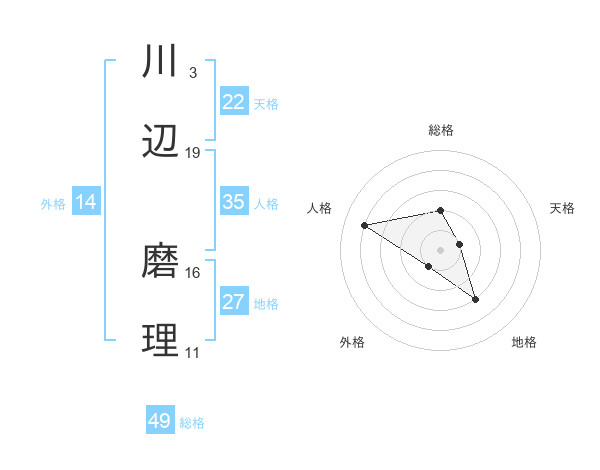 川辺 磨理さんの総格は49画の2点!