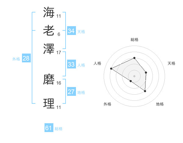 海老澤 磨理さんを姓名の画数から五運を鑑定