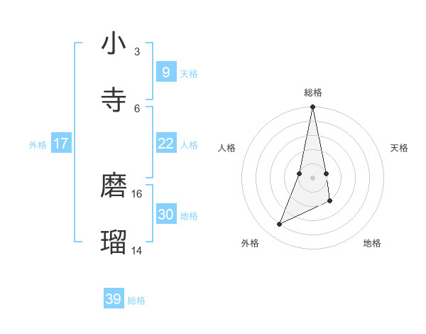小寺 磨瑠さんの総格は39画の5点!