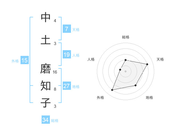 中土 磨知子さんを姓名の画数から五運を鑑定