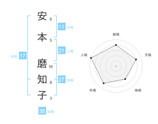 安本 磨知子さんを姓名の画数から五運を鑑定