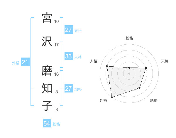 宮沢 磨知子さんの地格は27画の3点!