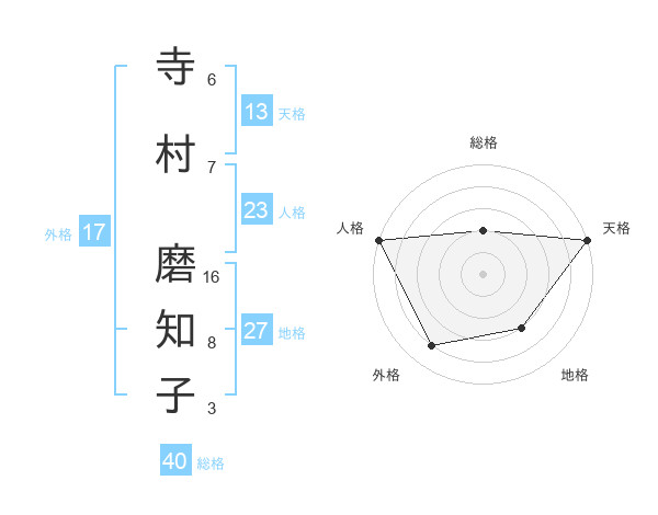 寺村 磨知子さんを姓名の画数から五運を鑑定